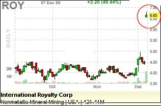 In more gold miner news today, Franco Nevada has proposed to ROY, International Royalty Corp. ROY's stock has jumped 50%.